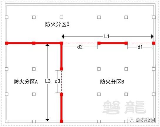 2、防火分区A和防火分区C的防火分隔部位宽度按L1计算: