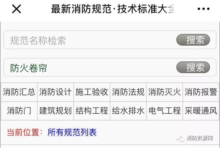 一、通过 gf.1190119.com,可对所有消防类规范中的“防火卷帘”关键字进行索引!