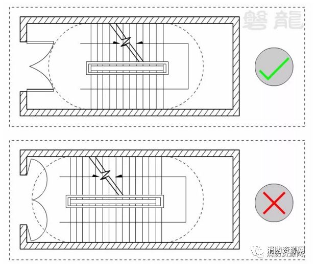2、开启后应尽量减少对疏散路径的净宽度影响;
