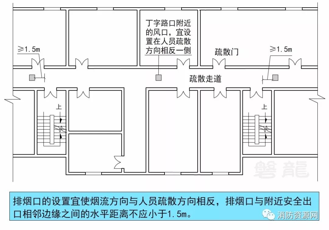 四、丁字形疏散走道的排烟口设置要求: