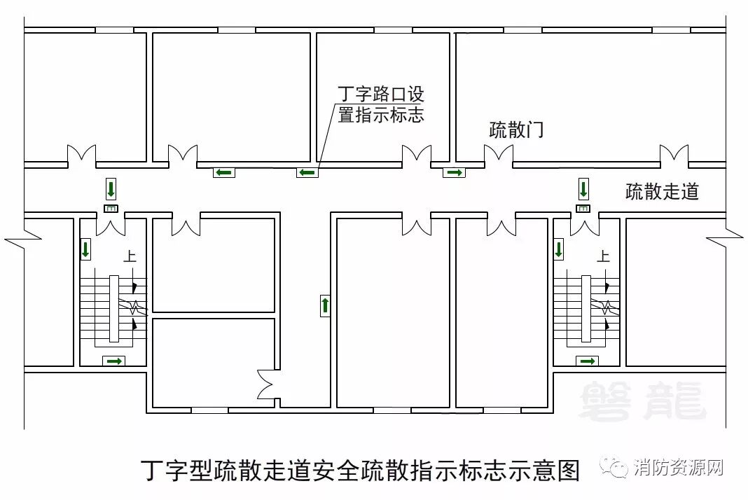 三、丁字形疏散走道的疏散指示标志设置要求: