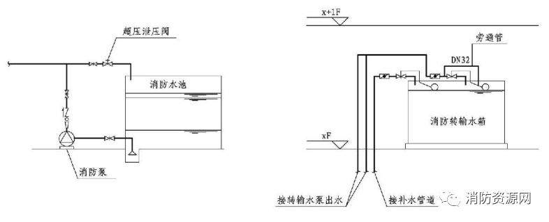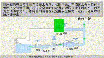 以安装超压泄压阀为例,泄压阀安装在消防水泵出口的主管路上,超过安全值时自动开启泄压(泄压后的水一般回流至消防水池),压力正常后自动关闭,维持管网设备在设定的安全值之下运行,还可以缓解水锤冲击。