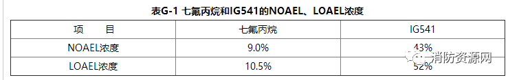 根据规范要求:在通常有人的防护区,灭火设计浓度或实际使用浓度,不应大于有毒性反应浓度(LOAEL浓度),该值应符合规范附录G的规定: